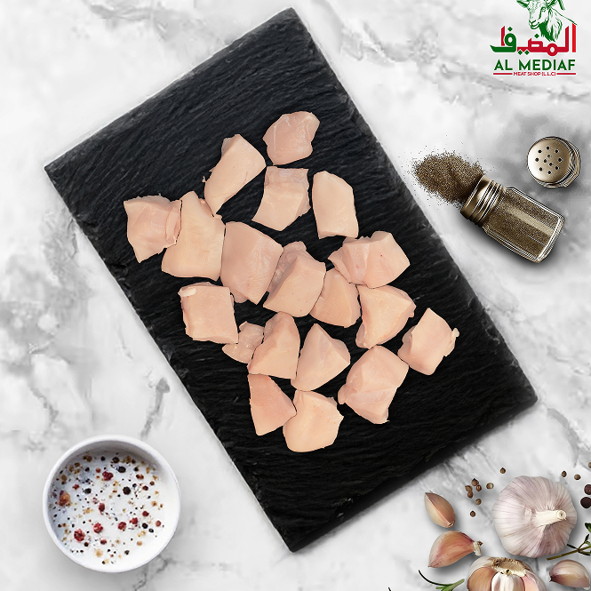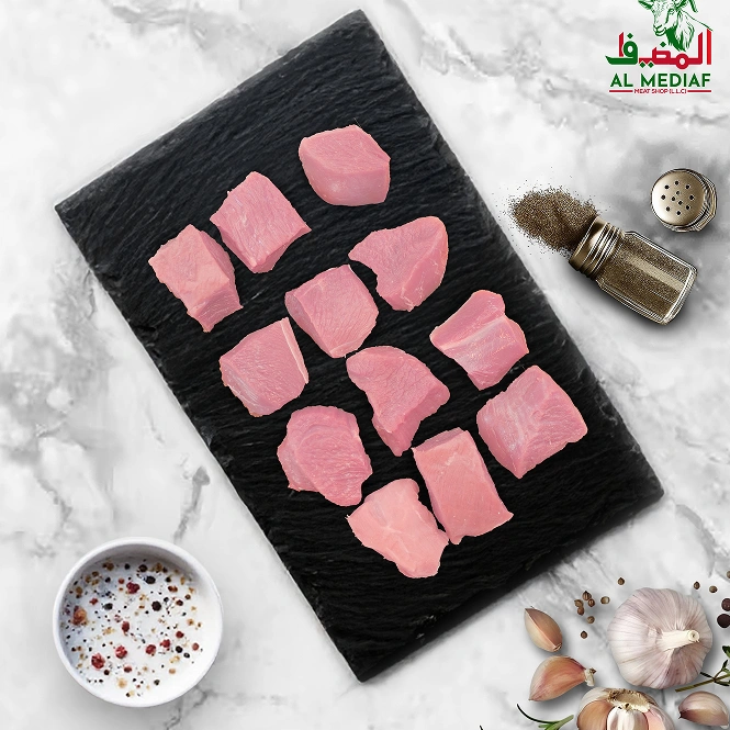 Cubed and ready for marination, perfect for BBQ and skewers.