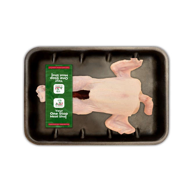 Whole halal chicken, cleaned and ready for cooking your favorite meals.